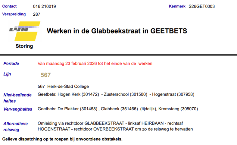 Werken Glabbeekstraat- Halstraat : belangrijke wijziging voor De Lijn